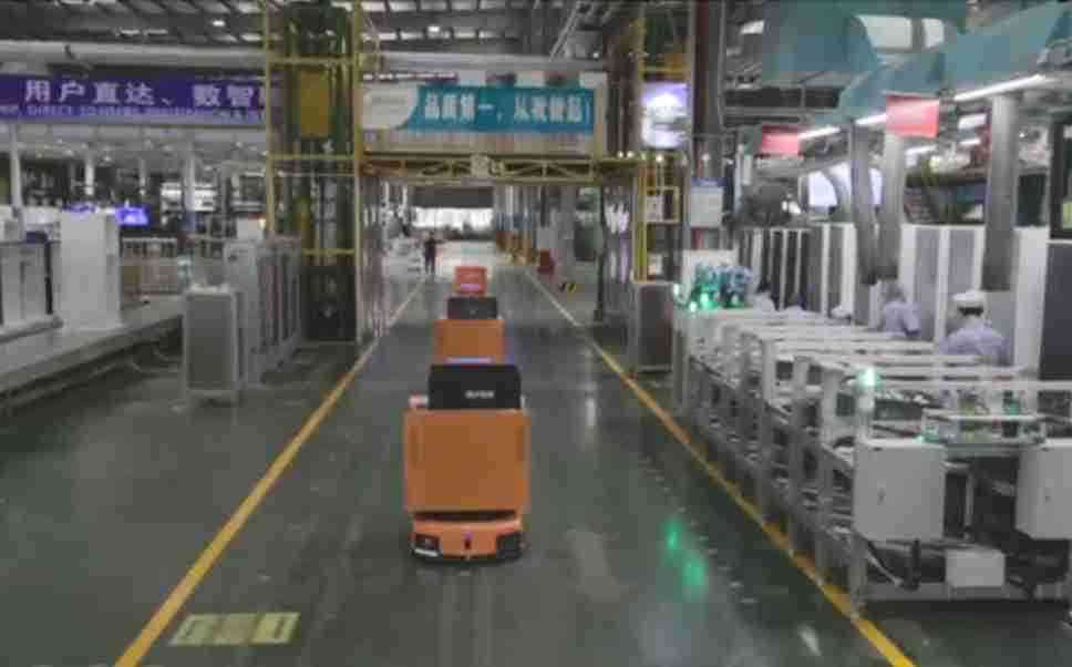 为车载冰箱物流配送打造的智能解决方案,,包含产中物流通过潜伏举升AMR搬运至线边,,产后成品物流智能仓储,,,流程包含产中物流智能齐套入库,,,线边安灯叫料AMR智能配送至线边,,,,成品入库、、、、出库,,通过无人堆高车机器人,,,智能仓储管理替代人工作业管理,,,,实现更高存储、、更高效率、、更具柔性化的解决方案。。。