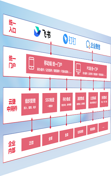 对协作平台提供支持服务,,支持企业应用与协作平台对接,,,包含组织同步、、、、消息集成、、、、待办集成等。。支持目前主流的协作平台:钉钉、、企微和飞书。。